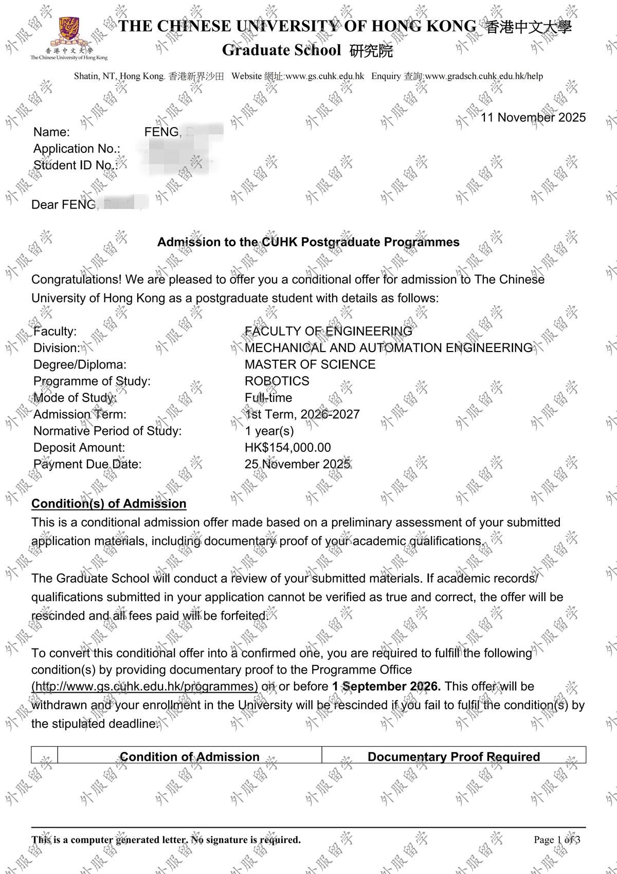 中国香港中文大学机器人专业硕士offer