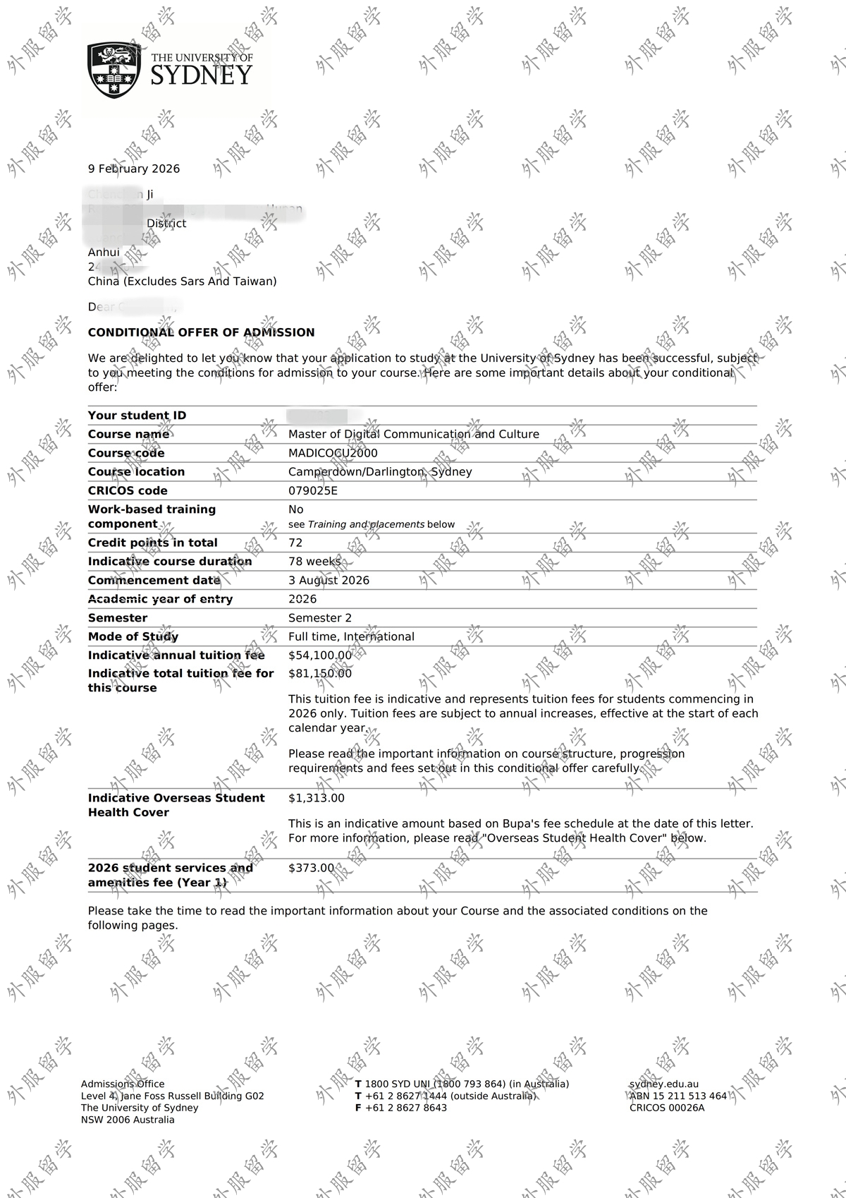 澳大利亚悉尼大学数字传播与文化专业硕士offer