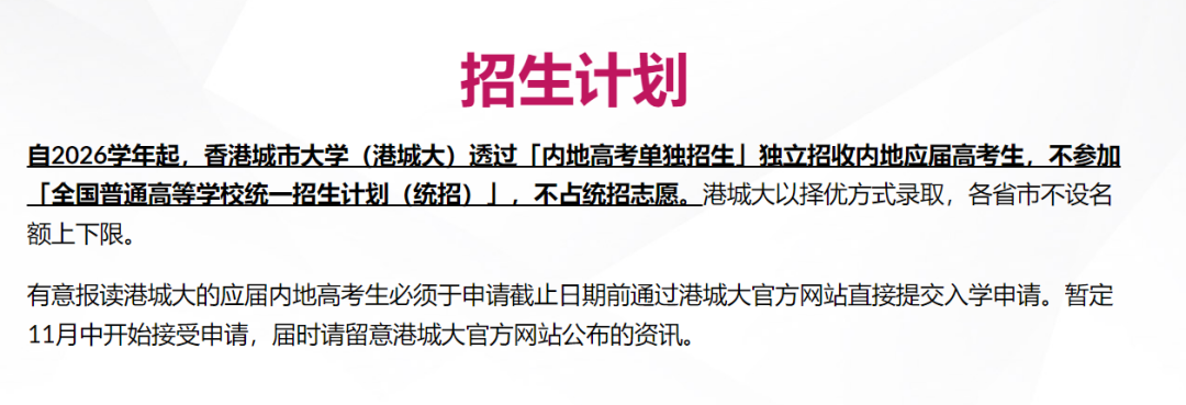 港城大宣布2026年不再参加统招,独立招生,不占高考志愿填报。预计25年11月中开放申请。