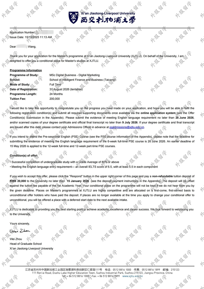 苏州西交利物浦大学数字化商业-数字营销专业硕士offer