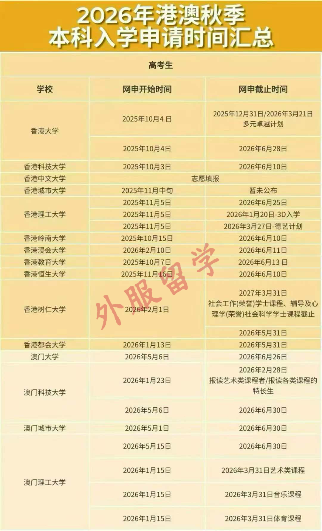01、澳门大学 高考生申请时间:2026年5月4日- 6月26日